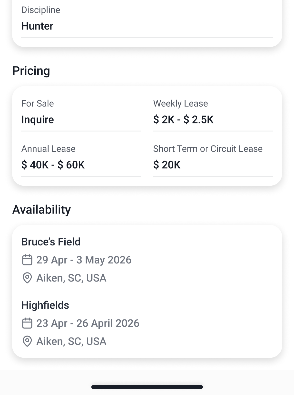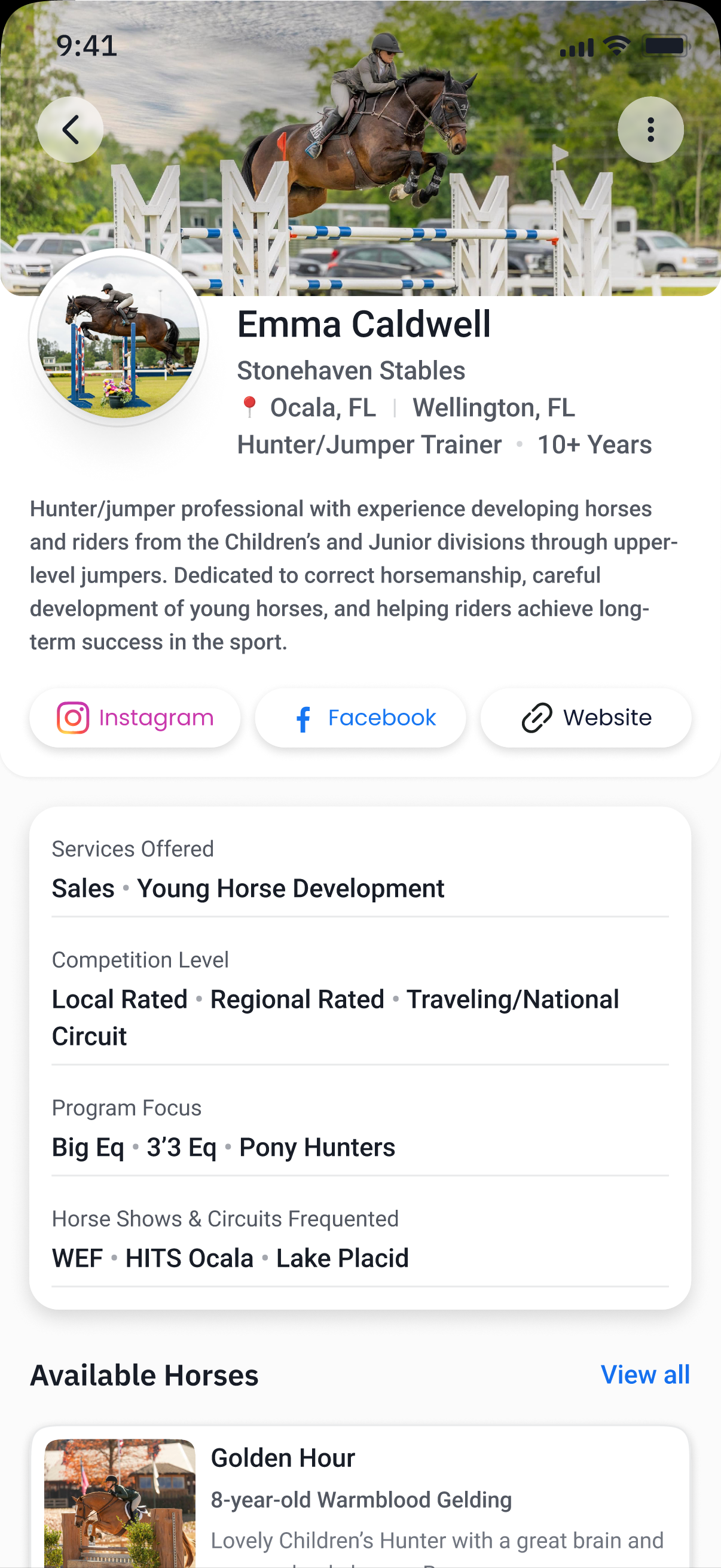 Where trainers find horses, help, and connections — all in one place.Real-time access to sales, leases, and trusted service providers, exactly when and where you need them.